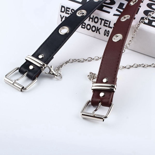 These gorgeous Women Punk Chain Belts are constructed of high-quality PU Leather. The silver double prong buckle really compliments this belts style and keeps the belt secure around your waste. These Stylish Ladies Leather Belts are made of PU leather and quality metal alloy, which will make this special belt wear-resistant and durable for long term wear.